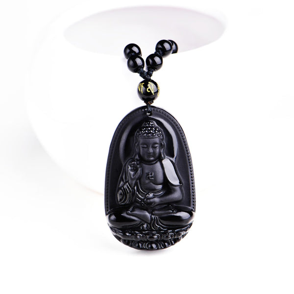 Collier & Pendentif Bouddha "Protection" en Obsidienne Noire